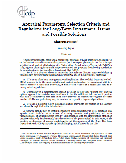 Appraisal Parameters, Selection Criteria and Regulations for Long-Term Investment