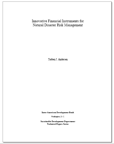 Innovative Financial Instruments for Natural Disaster Risk Management