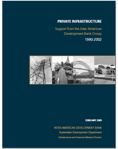 Mónica Almonacid, Paulina Beato, Jaime Millán, Diego Sourrouille Private Infrastructure. Support from the Inter-American Development Bank Group: 1990-2002 IDB Sustainable Developing Department - february 2003 1. Infrastructure (Economics) —Latin America. (click the image to read the book) (02/01/2003) |